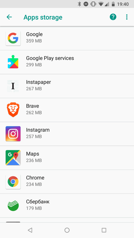 Google's keyboard app routinely eats 150 MB. Is an app that draws 30 keys on a screen really five times more complex than the whole Windows 95? Google app, which is basically just a package for Google Web Search, is 350 MB! Google Play Services, which I do not use (I don’t buy books, music or videos there)—300 MB that just sit there and which I’m unable to delete.