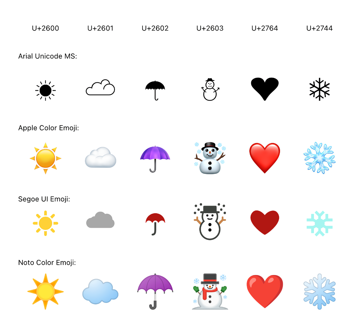 To sum up, these are seven ways emoji can be encoded:
