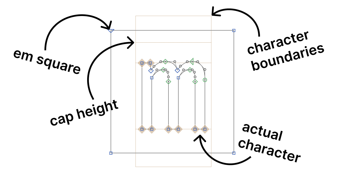 Long story short, this square is what you actually control when setting font size. This square will be 32/43 px tall/wide if you set the font size to 32 pt. Too bad it’s invisible and no element in font matches it.