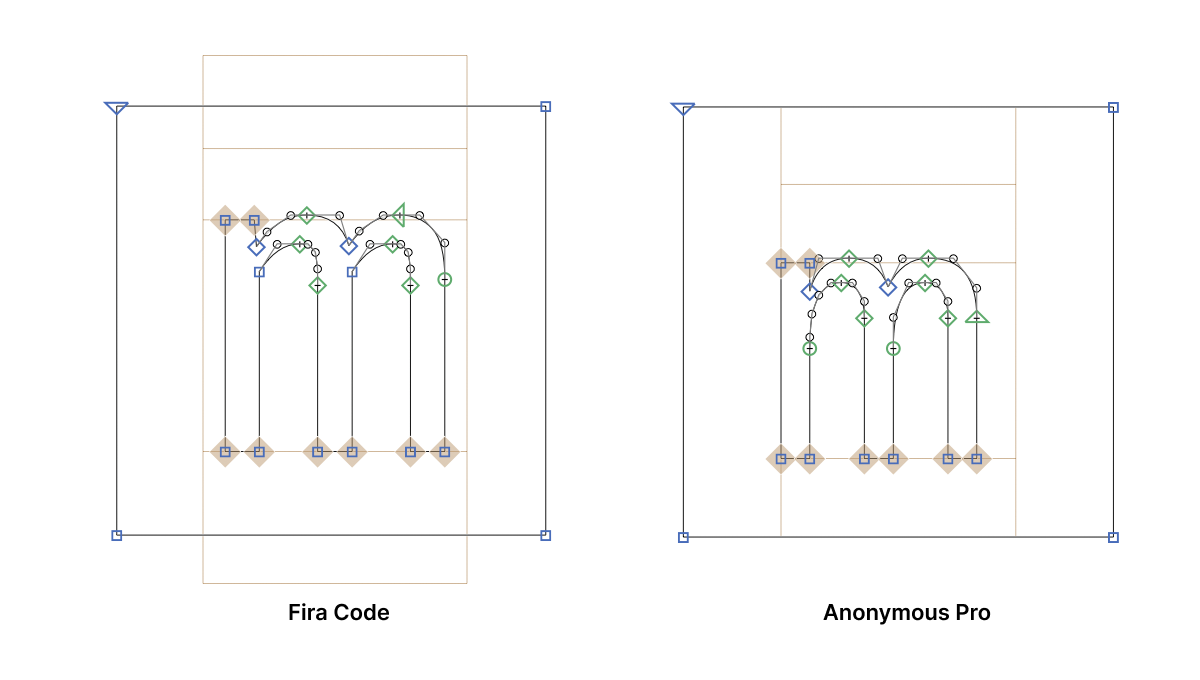 Meaning, if I open Fira Code and draw em square, it will not align with anything at all: