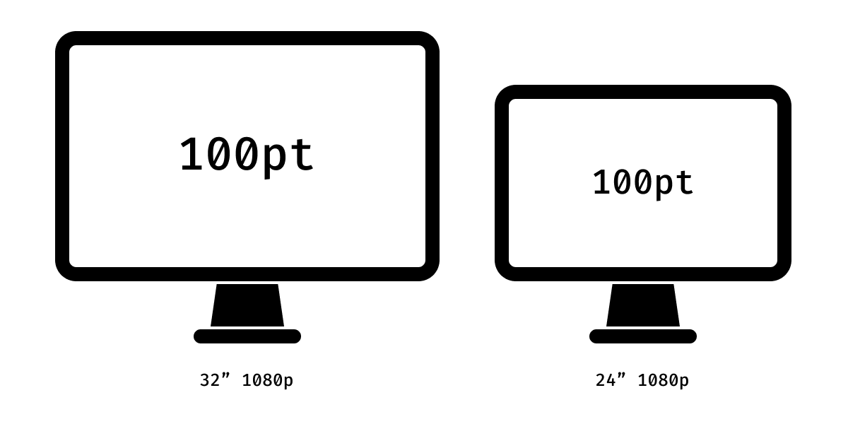 In practice, nobody does that. Instead, macOS always uses 72 PPI to convert points to pixels. If you put macOS on a 32" monitor and a 24" monitor, both set to 1080p resolution, you’ll get identical pixel size, but not physical size, undermining the original idea.