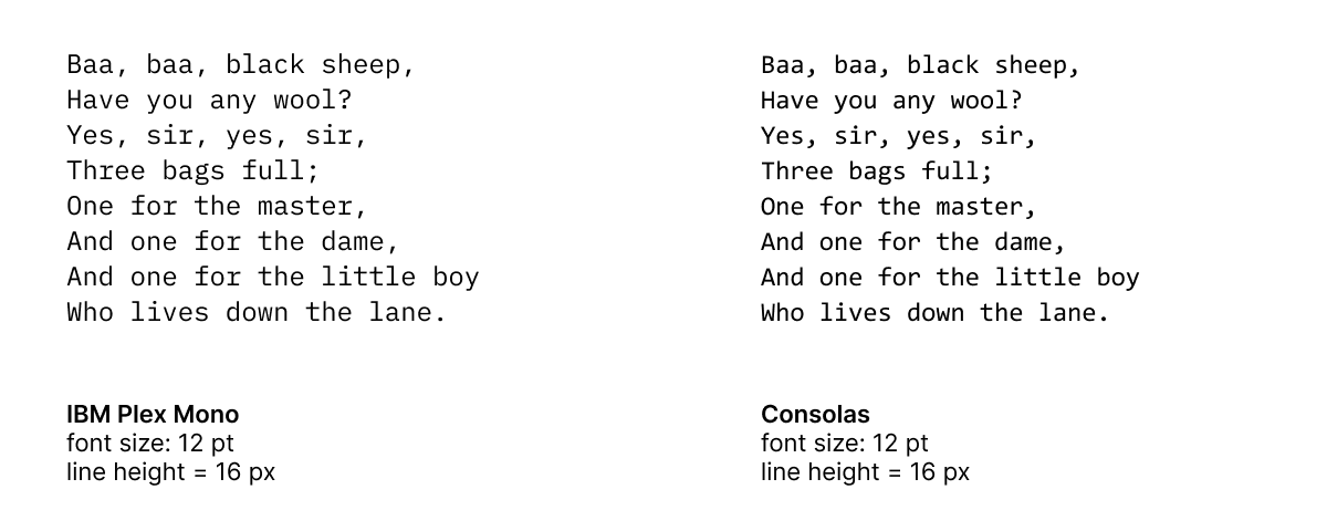 - I configure my editor to the preferred font size and line height once.