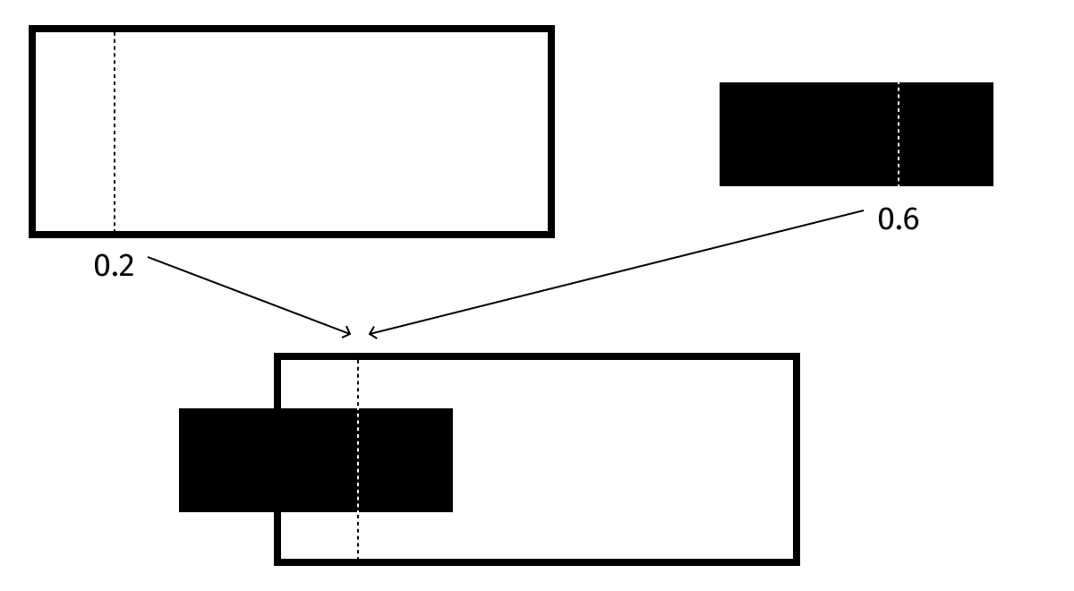 To align something inside a container, you specify two numbers: percentage of the child’s width and percentage of the container’s width.