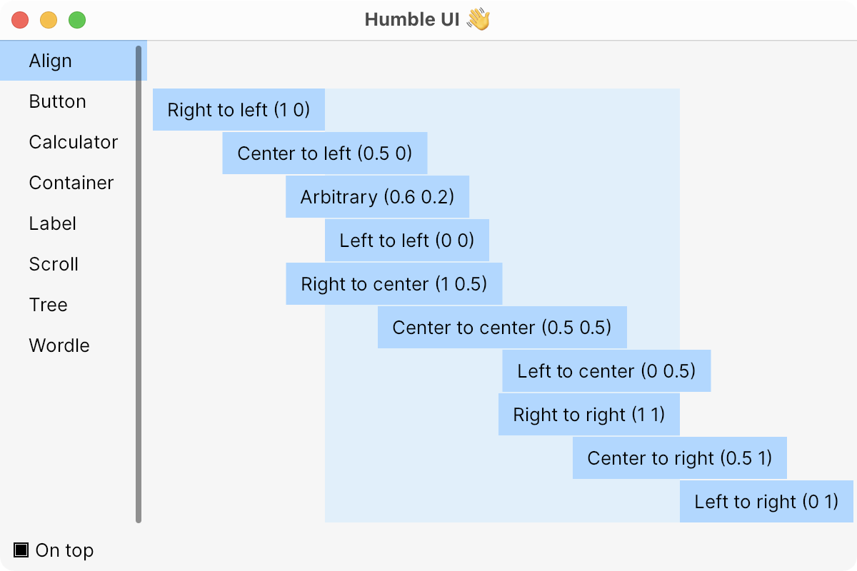 aligncomponent to-drawat window size; alignwill-measurebutton to determine its intrinsic size;alignwill translatecanvasand then ask the button to-draw, but with its own previously determined size.