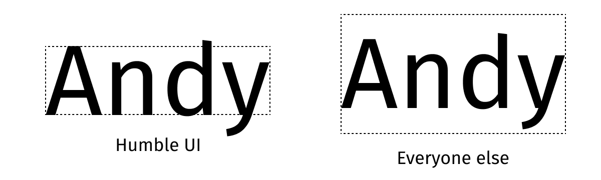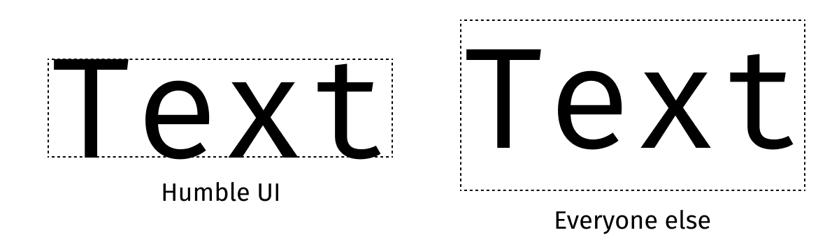 In short, text boundaries in Humble UI are defined by baseline and cap-height, not by ascender/descender/em square or any other arbitrary unit.