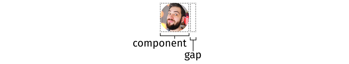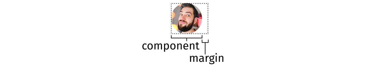 We think about 10 px spacing as its own thing, part of the layout, not part of the components. We don’t say “profile picture with 10 px right margin” because that’s not how we think.