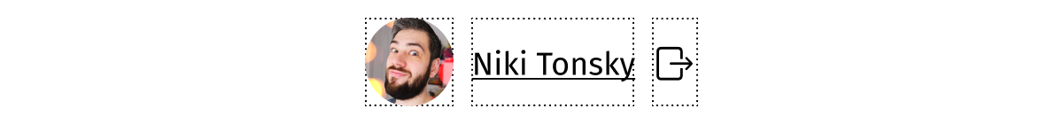 If you try to describe it with words, you would say something like “profile picture, profile link and logout link with 10 px between components”.