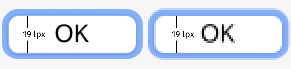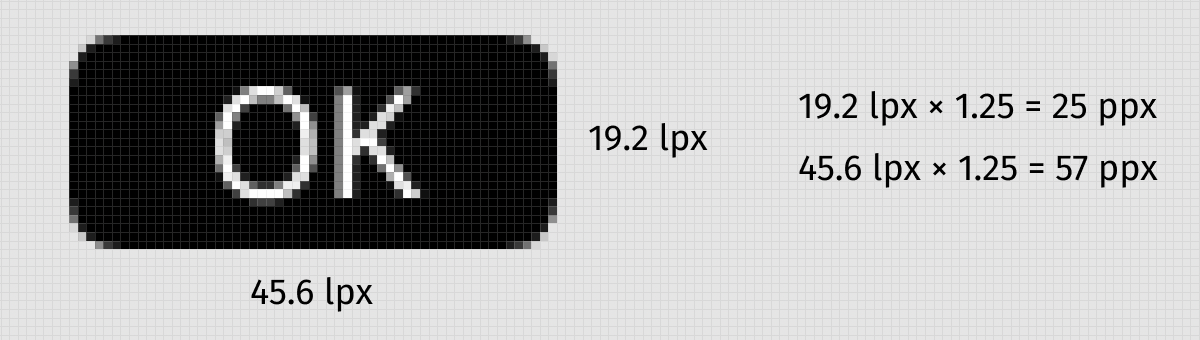 So there could be no 20.5 physical px button in Humble UI, but 20.5 logical px—why not? As long as physical result fits the physical pixel grid, we are happy: