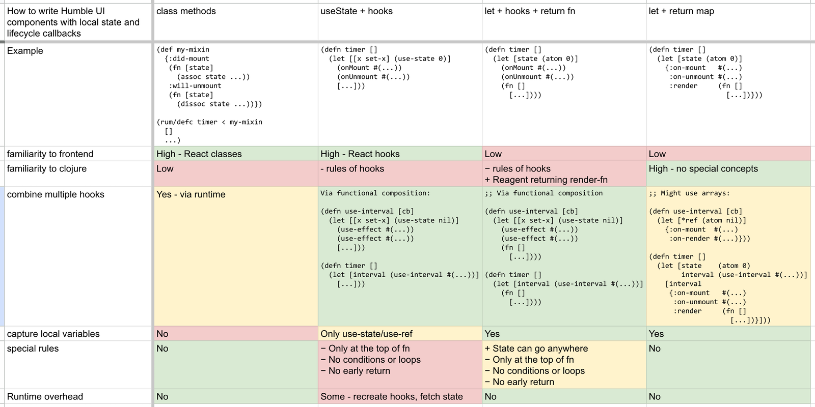 I think it’s possible with current React by implementing a custom hook or something, and then using a dummy setState to trigger re-rendering when needed. So something like that, but maybe a little more purpose-driven? Like invalidate or something. It might also be useful to be able to wrap render methods, too. Ultimately, if I can implement signals and DataScript both in user-land, I think we’re good.