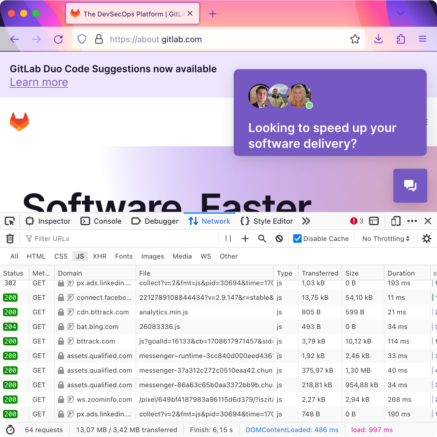 And yet, on the same internet, in the same timeline, Gitlab needs 13 MB of code, 500K+ LoC of JS, just to display a static landing page.