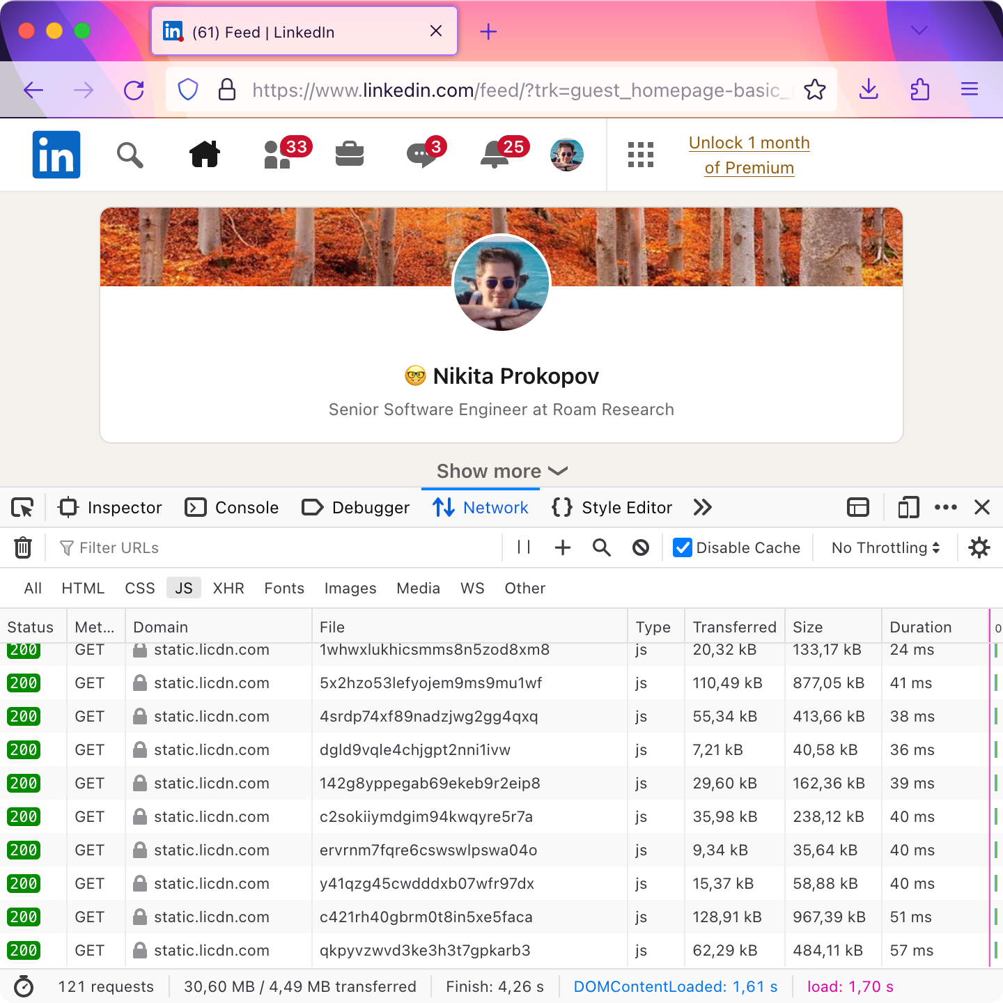 LinkedIn. Is it a blog? A platform? It has search, it has messaging, it has social functions. Anyways, that’ll be 31 MB: