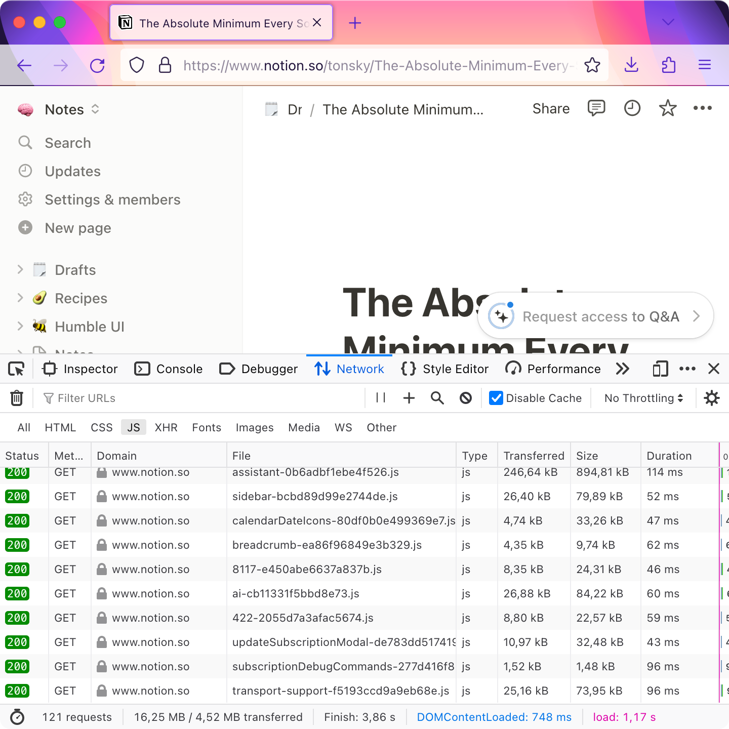 I was a bit out of touch with modern front-end development. I also remembered articles about web bloat, how the average web page size was approaching several megabytes!