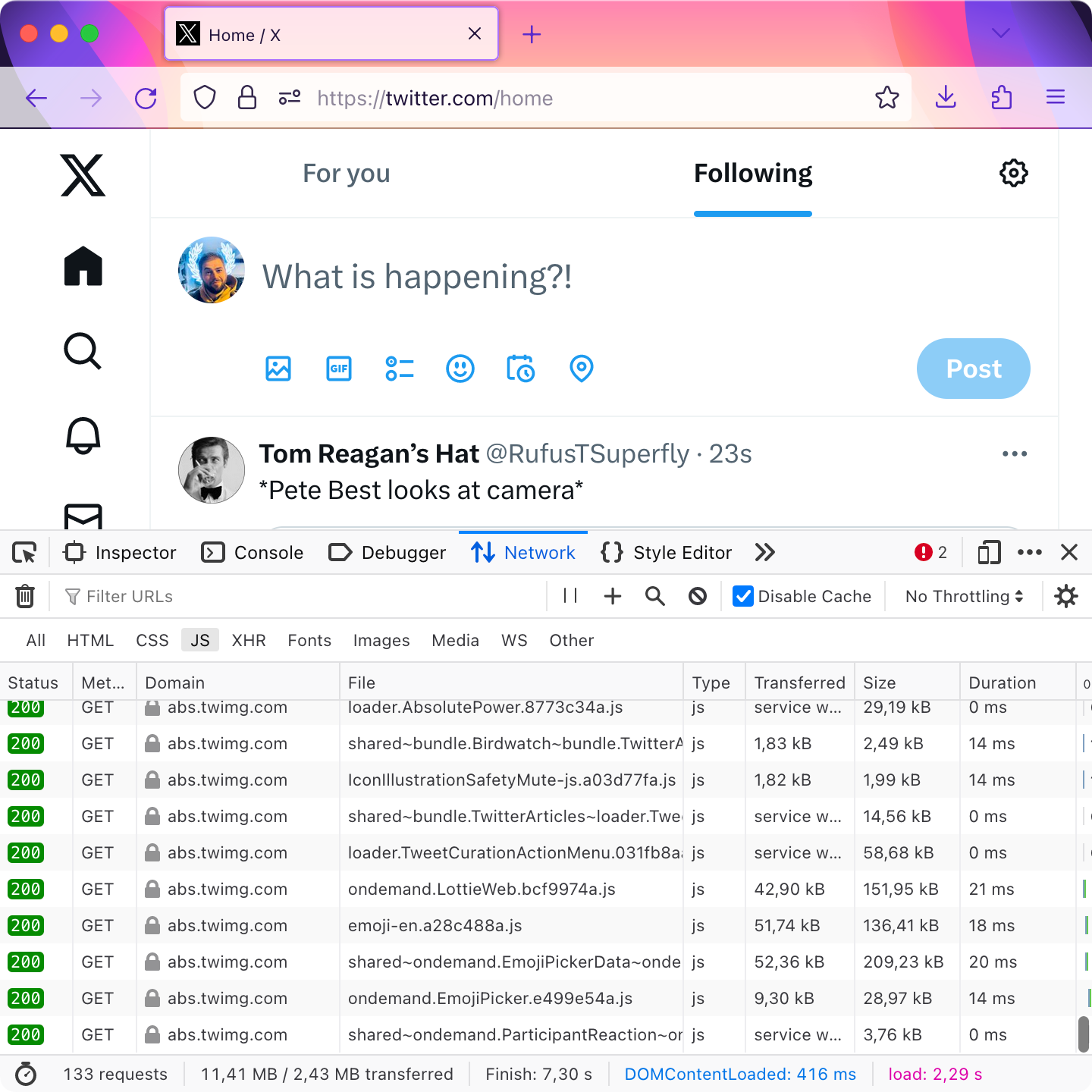 - Service Workers enabled (again, more real-life)