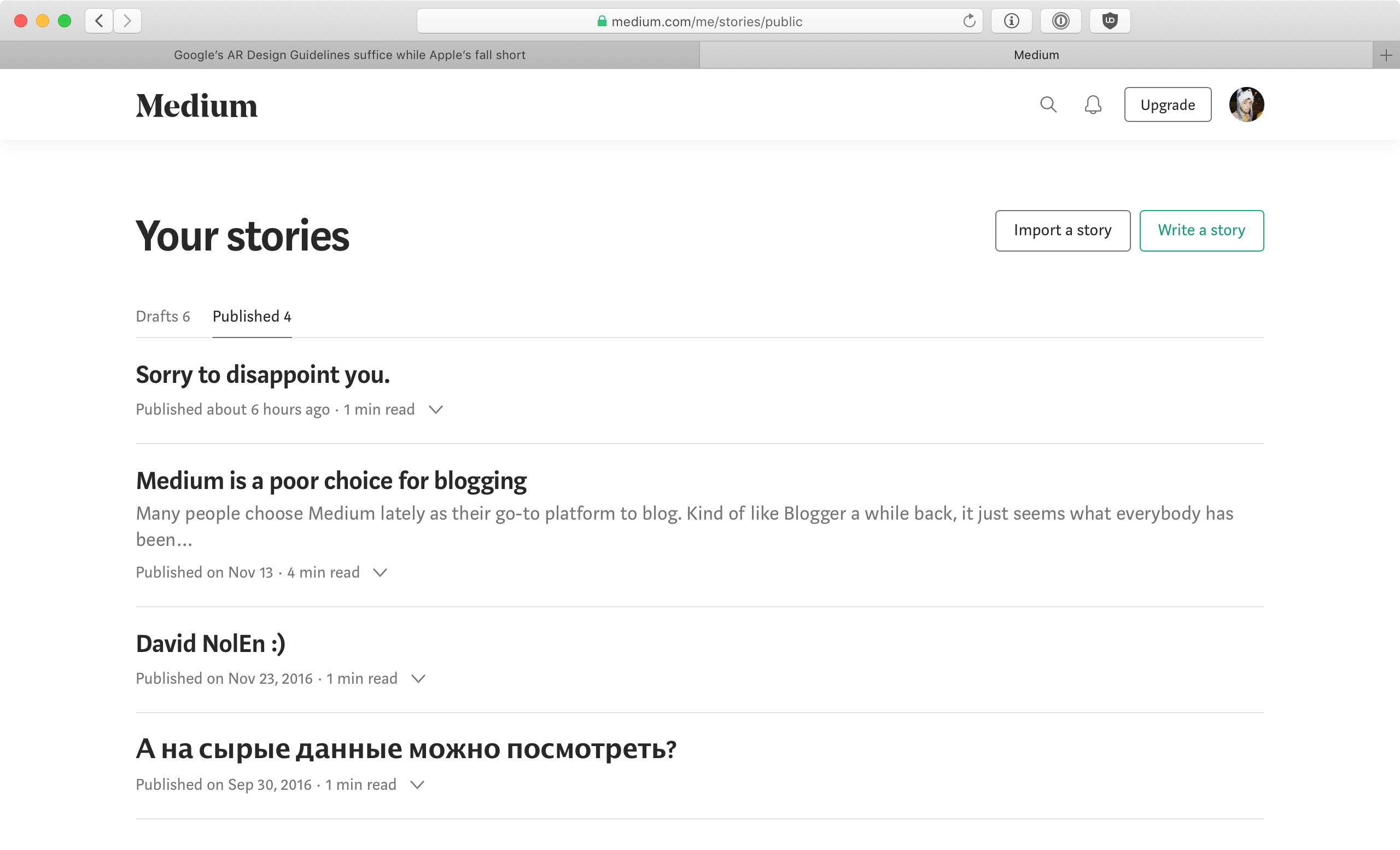 Many people choose Medium lately as their go-to platform to blog. Kind of like Blogger a while back, it just seems what everybody has been doing (unless you are really nit-picky and care enough to host your own thing).