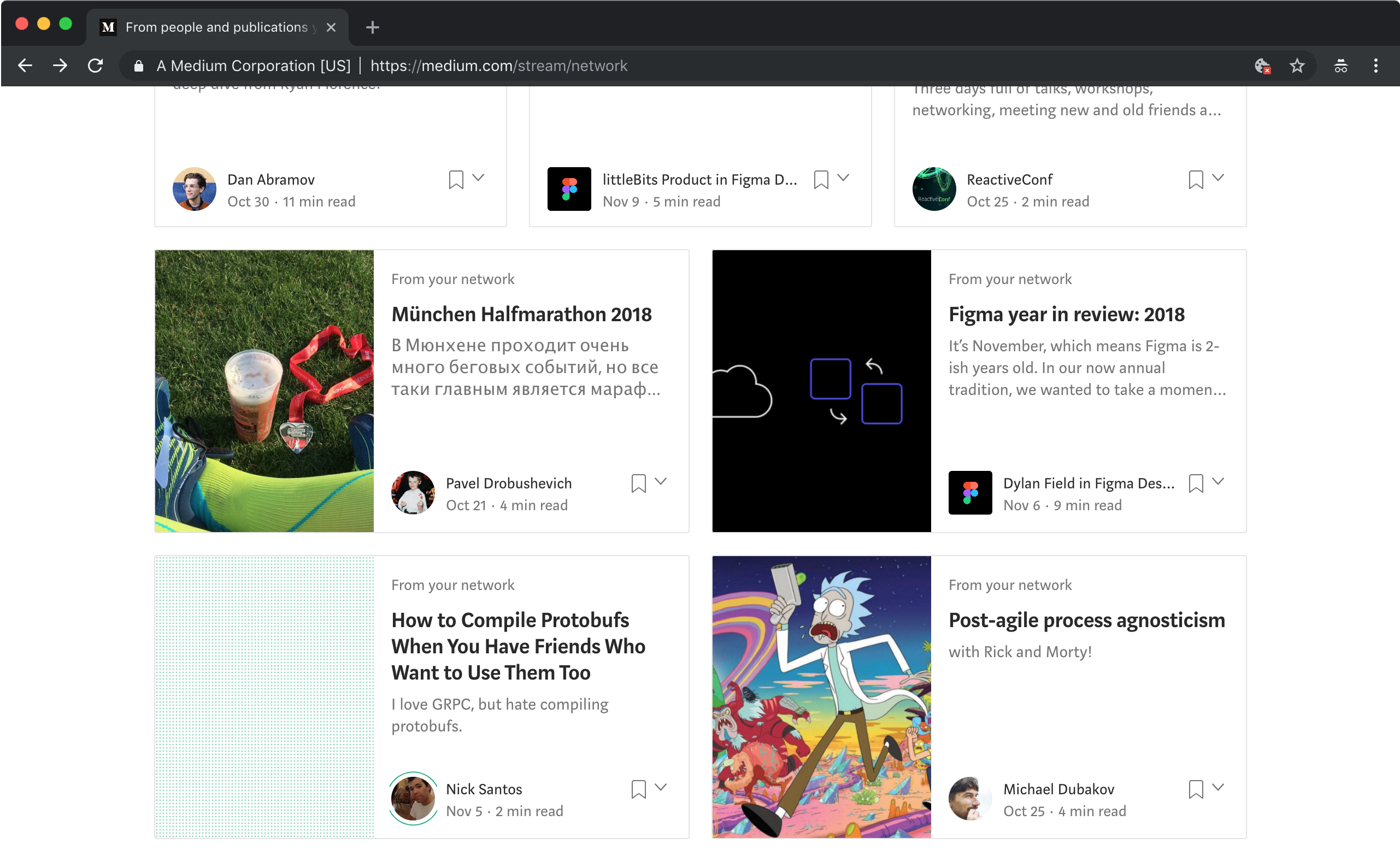 You can always follow people on Medium, you would say. Sort of, but Medium does not have a non-algorithmic (linear, that is) feed. Look at this mess: