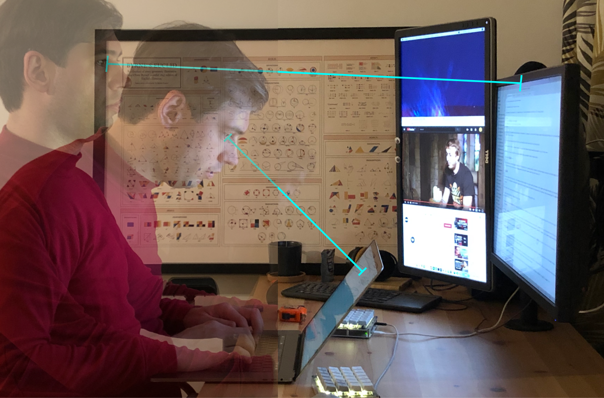 Then, it’s nearly impossible to ensure that perceived size, or how big the user sees the control, is the same because the distance to the display is different. For example, on average my eye-to-screen distance is 33 cm with the laptop, but 68 cm with the monitor. That’s 2× difference!