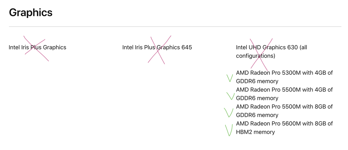 Your Macbook has to have a discrete graphics card (I think).2 Various Intel UHD / Iris Graphics do not work. eGPU works.