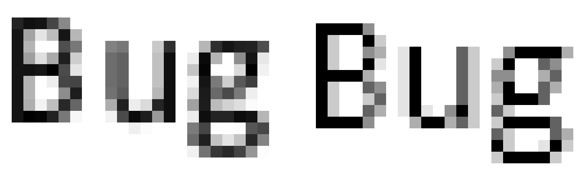 Look at the “g” in the picture above. It’s hard to say where strokes start or end, or even how many of them are there. It’s just random gray noise or a checkerboard, but not a letter. This is a letter: