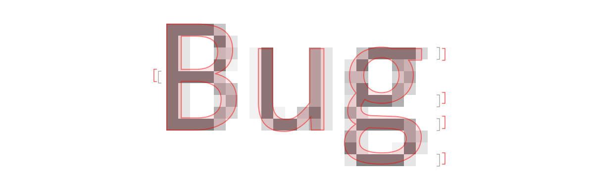 But hey! If you never saw a high-res Consolas, who cares if g is the same shape or not? Who cares if stems are in the wrong place if you don’t know where they should’ve been in the first place? Well, sometimes problems are more obvious: circles are not circles, equal distances become not equal, proportions are all wrong, what supposed to be small becomes huge and vice versa, etc. Here: