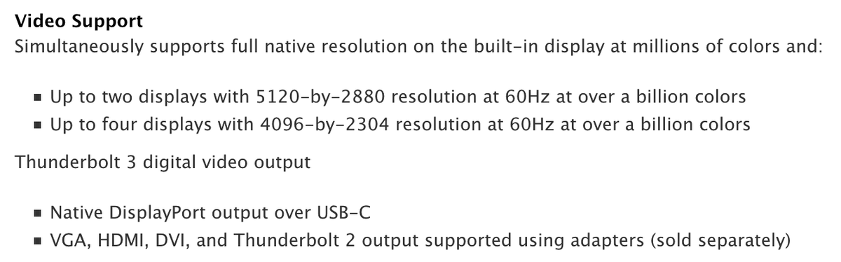 The whole situation reminds me of buying 4k display in 2014: there are only a couple of models, ports are confusing, Apple support sucks. Hopefully, in five years 120 Hz will become a standard. Until then we should be grateful that, at great inconvenience, we at least can use modern displays with macOS. Thanks, Apple!