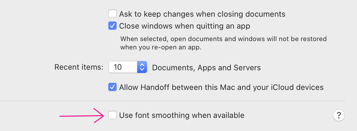 That preference name is misleading. It used to be called “LCD font smoothing”, which suggested subpixel antialiasing. But Apple removed subpixel antialiasing from macOS in 2018, the same month it retired its last non-retina laptop.