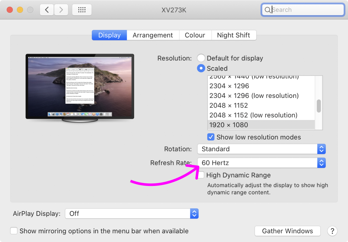 - Fully boot into macOS. At this point display usually is at 60 Hz.