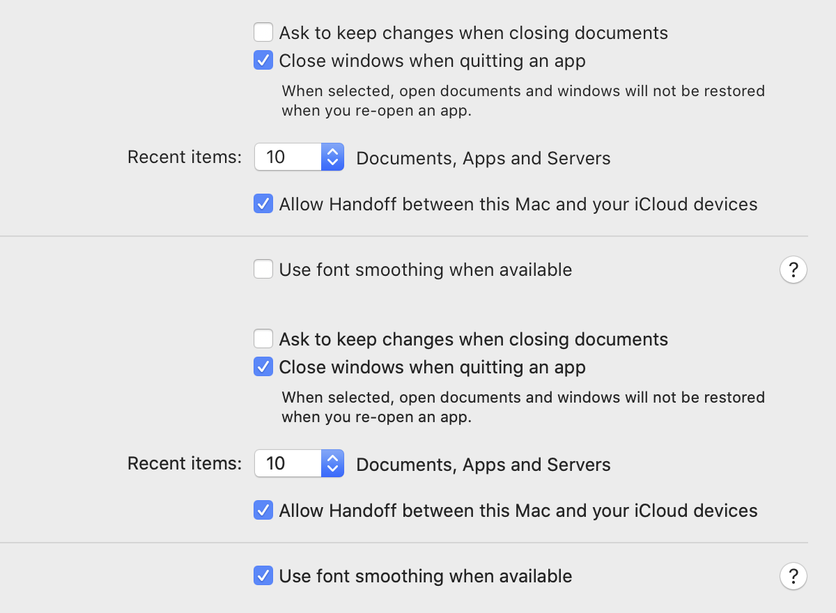 That’s right, UI isn’t even rendered in that weird target resolution. Every Mac app thinks it is rendering at 2×, and only after that OS scales it down to the target resolution. There’s a lot of precision and nuance lost due to this two-step resize process.