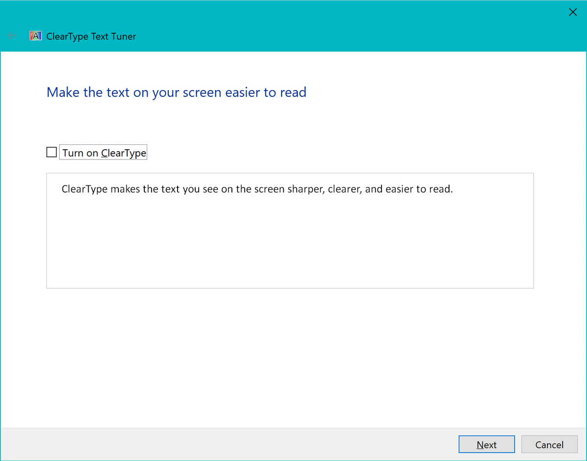 but even if you turn it off, you’ll have to go through configuring ClearType anyway. There’s just no OK button