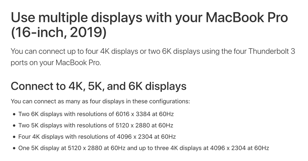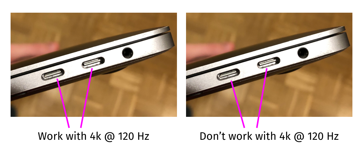 The whole situation reminds me of buying 4k display in 2014: there are only a couple of models, ports are confusing, Apple support sucks. Hopefully, in five years 120 Hz will become a standard. Until then we should be grateful that, at great inconvenience, we at least can use modern displays with macOS. Thanks, Apple!