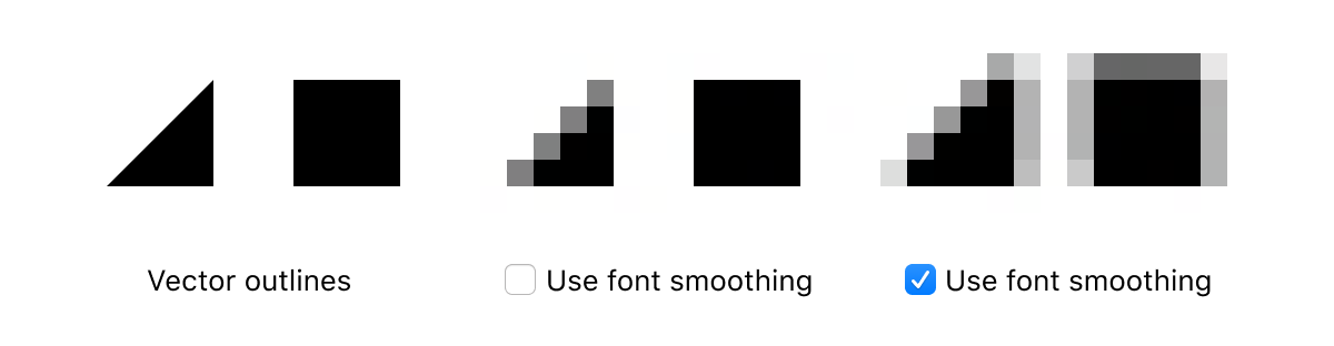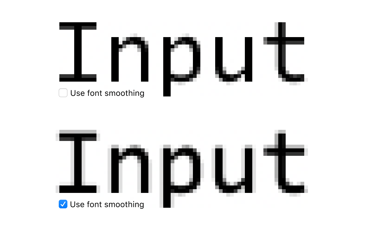 But that’s exactly what “Font smoothing” in macOS does! Here’s another example. MacOS blurs pixel-perfect boundaries with “font smoothing”: