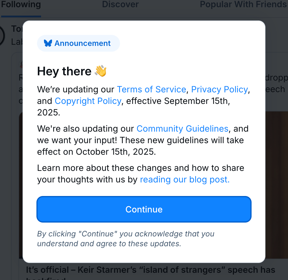 The company needs to announce a new feature and makes a popup window about it.