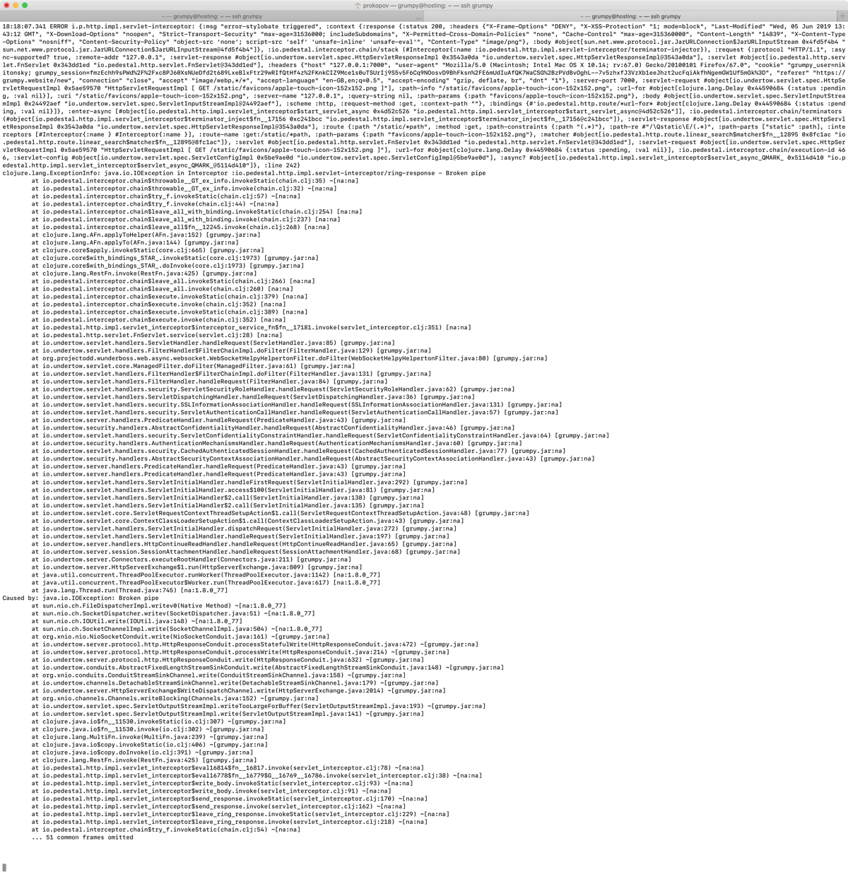 From there everything was smooth enough. The only annoyance was that production logs kept reporting “Broken pipe” error quite often: