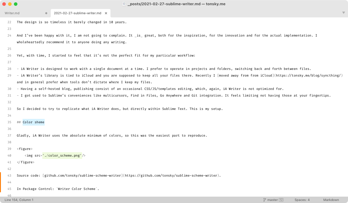 I decided to try to replicate what iA Writer does but inside Sublime Text. This is my setup.
