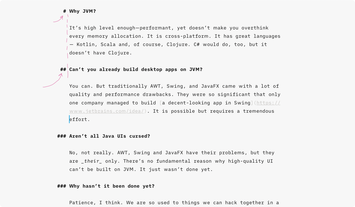 Why is it so cool? If ### is aligned to the body text, you have to skip ### and find the first meaningful letter.