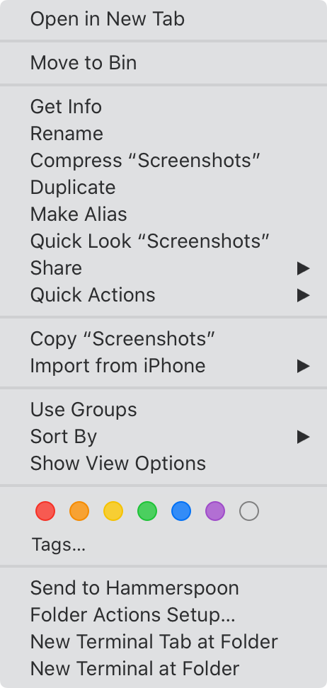 - In macOS context menu, “Tags” is in smaller font: