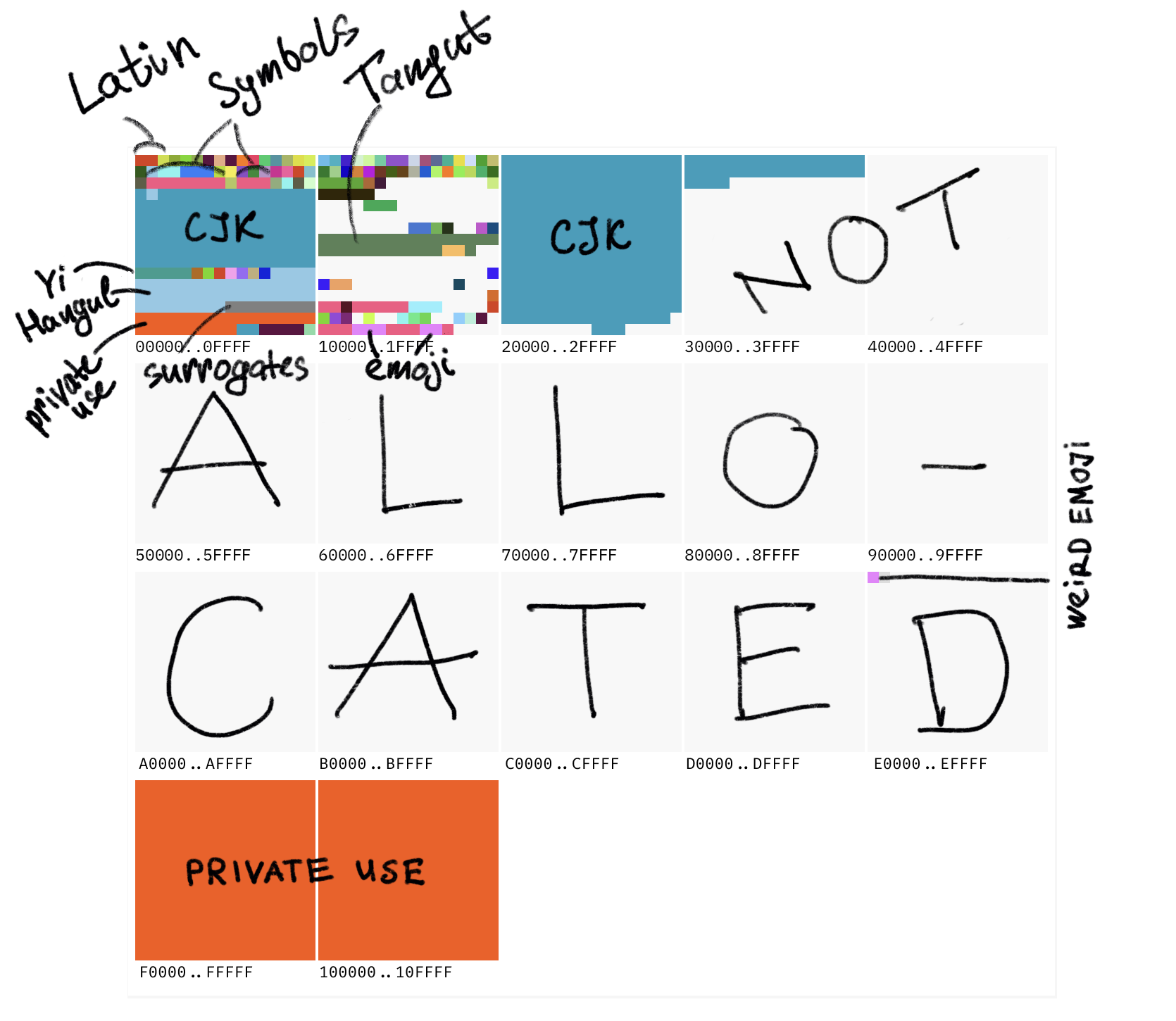 Also, fun fact: the number of planes Unicode has (17) is defined by how much you can express with surrogate pairs in UTF-16.