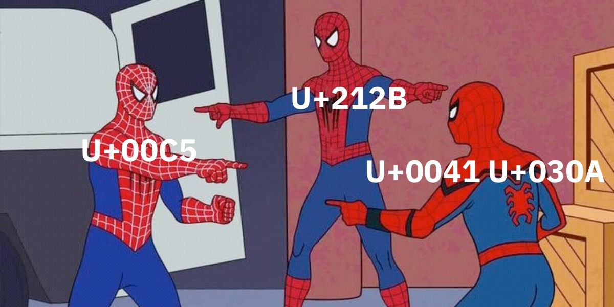 For some characters there are also multiple versions of them in Unicode. For example, there’s U+00C5 Latin Capital Letter A with Ring Above, but there’s also U+212B Angstrom Sign which looks the same.