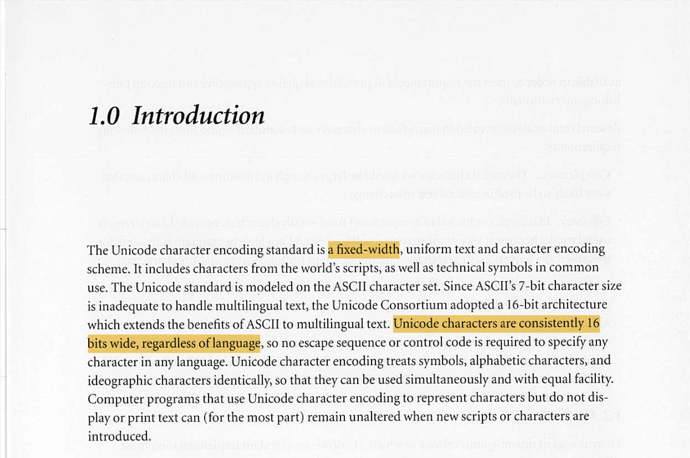 [...] no escape sequence or control code is required to specify any character in any language.